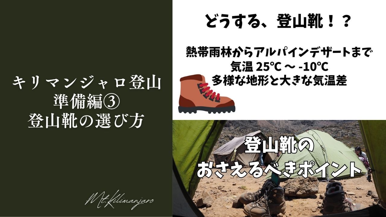 キリマンジャロ登山に行く際、どの程度のスペックの登山靴を選べばいいのか、押さえるべきポイントを解説します。 理想的な登山靴としてモンベルで例を挙げると、アルパインクルーザー1000 です。夏の縦走から積雪期でもある程度使 Read more about キリマンジャロ、登山靴の選び方[…]